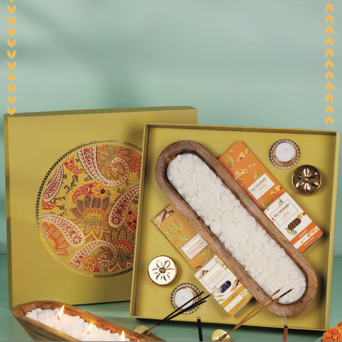 Tejal - Detail is her signature: whether bundling sweets or arranging soy-wax diyas, her precision ensures every hamper feels special.